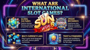 Game slots quốc tế là gì đang là thắc mắc của nhiều tân thủ hiện nay. Đây là dòng trò chơi quay hũ có quy mô toàn cầu. Trò chơi mang lại cơ hội trúng Jackpot cực lớn cho bạn. Bạn sẽ được trải nghiệm các vòng quay đầy kịch tính nhất. Tỷ lệ thưởng tại đây luôn dẫn đầu thị trường cá cược. Bạn đang tìm một sân chơi nổ hũ an toàn và chuyên nghiệp? Cổng game Sunwin chính là sự lựa chọn hoàn hảo nhất cho bạn.
